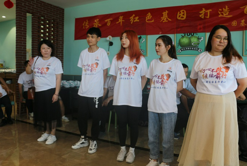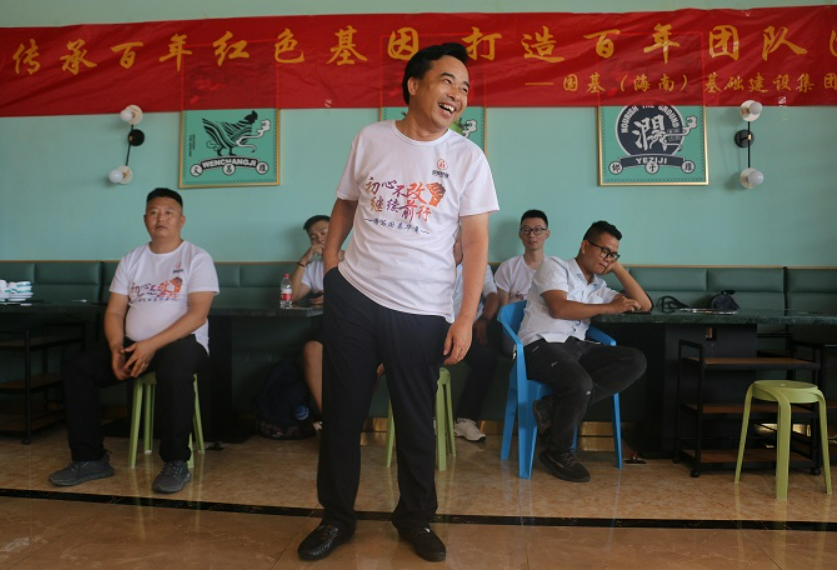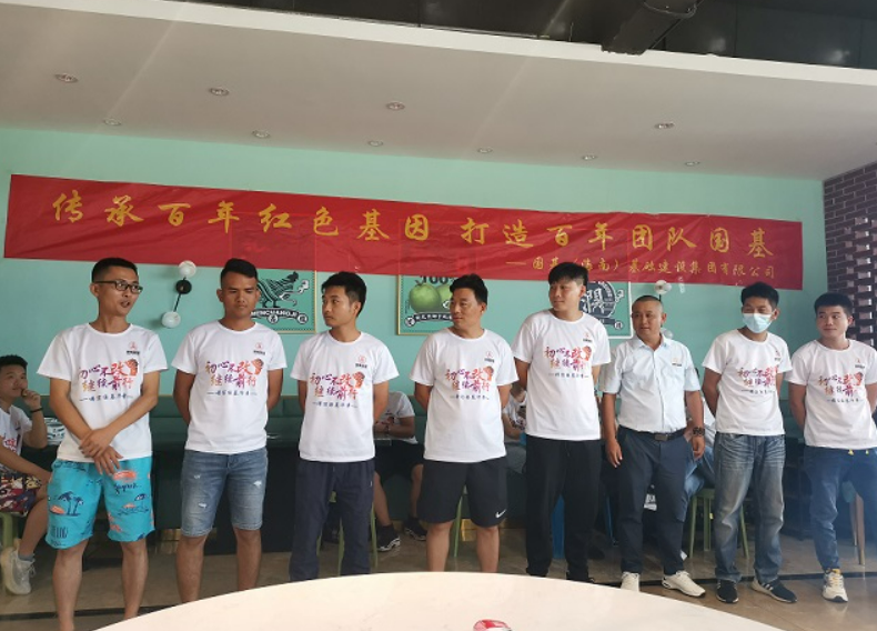 在出發(fā)往儋州?;◢u之前,國基的家人們在集團總部一樓大廳一起上黨課,共同傳承百年紅色基因,一起打造百年團隊國基。